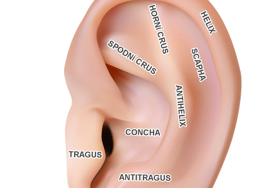 Na tomto obrázku môžete vidieť, ako vyzerá správne tvarované ucho. Pochopenie normálnej anatómie vám môže pomôcť lepšie porozumieť rozdielom medzi jednotlivými typmi deformít ušných boltcov.